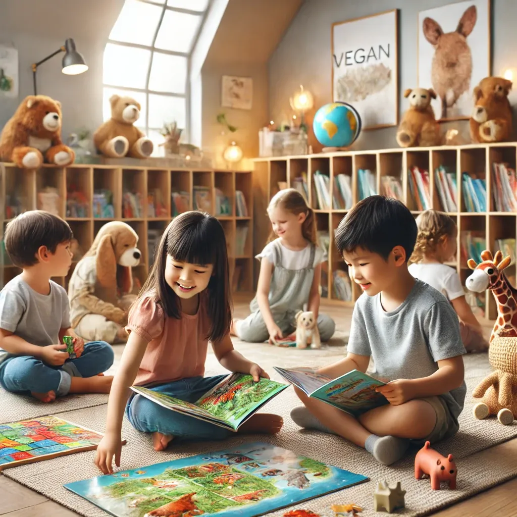 Los cuentos y actividades son una excelente herramienta para explicar valores veganos y reforzar su identidad. Busca libros ilustrados sobre el respeto a los animales, la empatía o la sostenibilidad, y compártelos con ellos.
